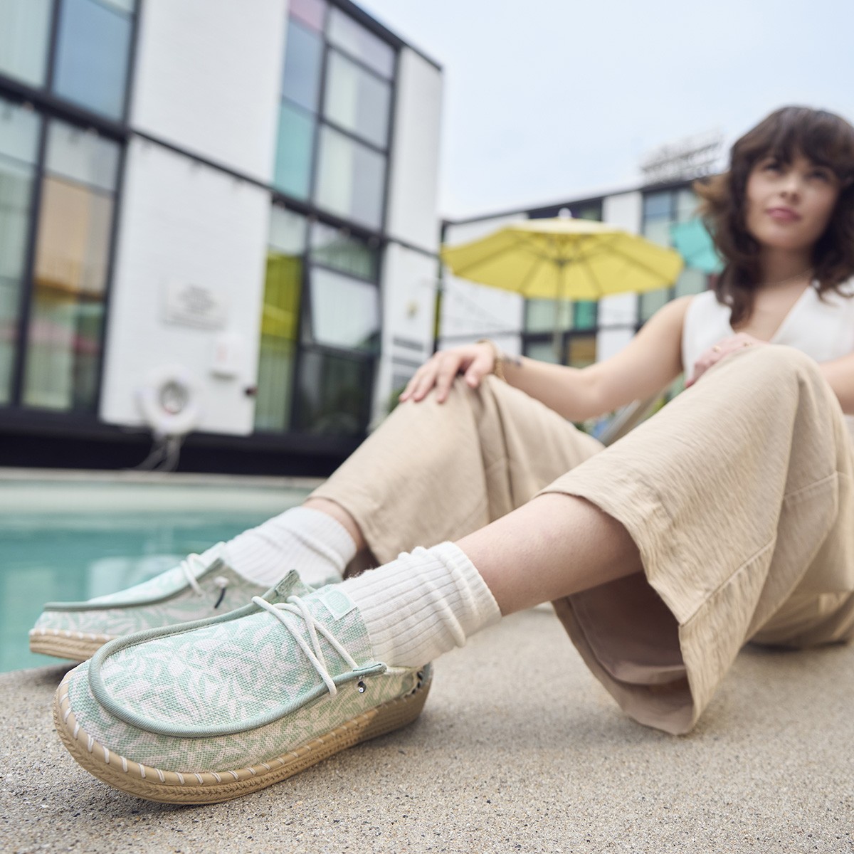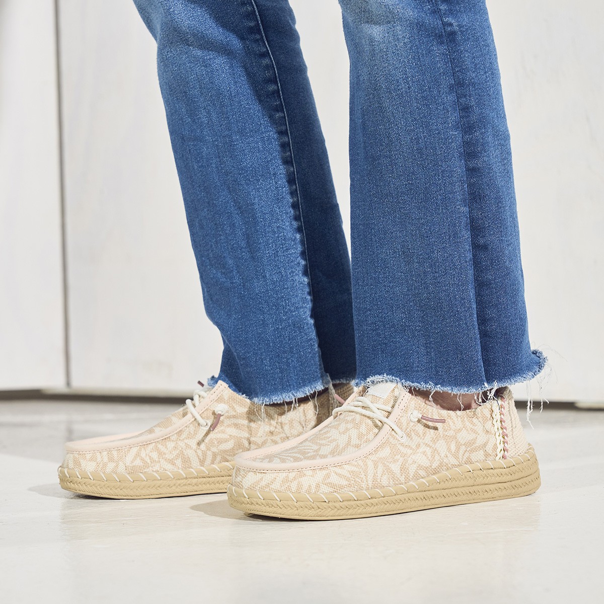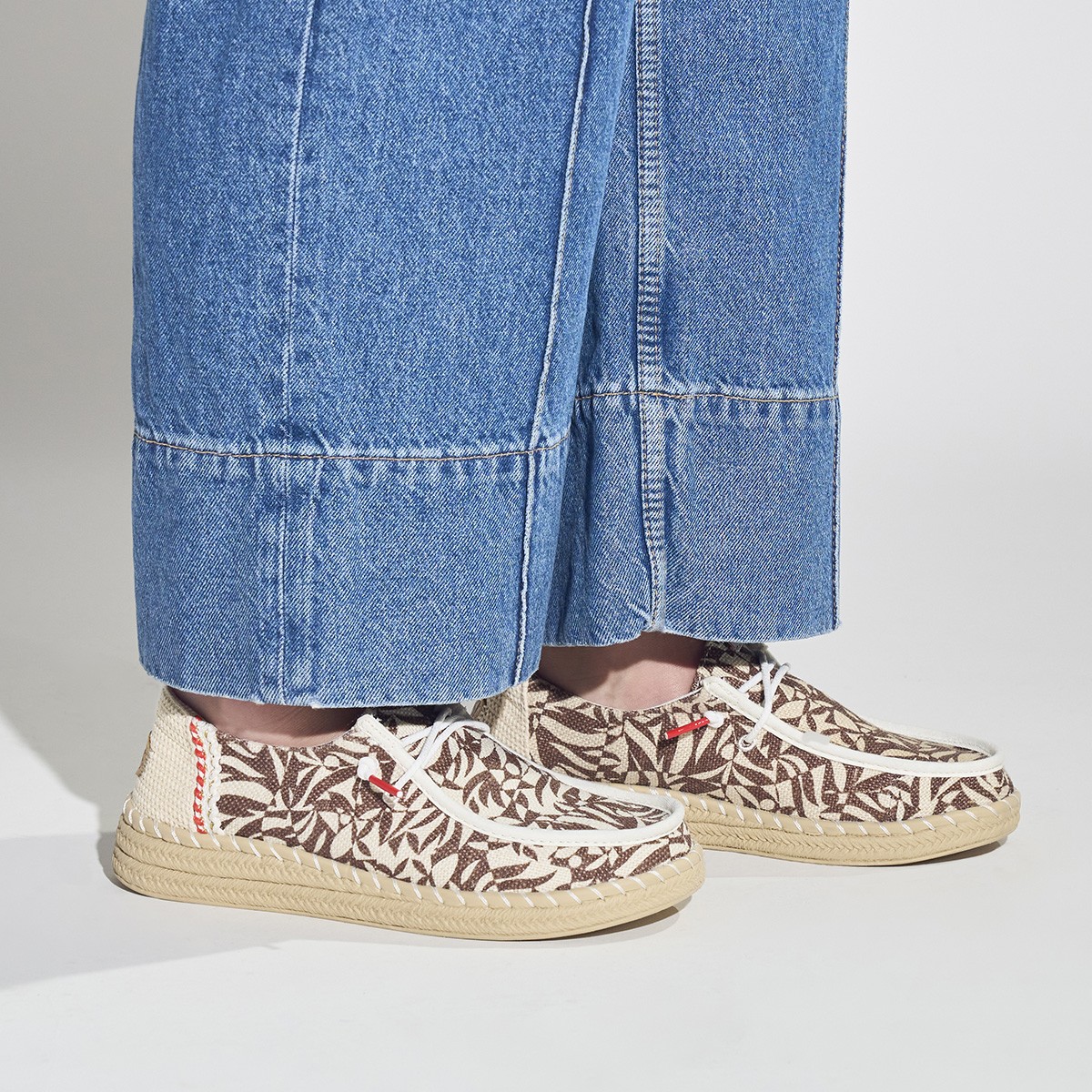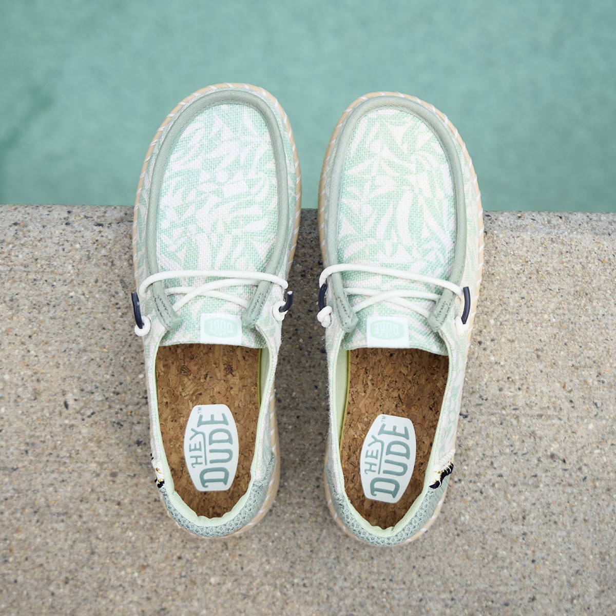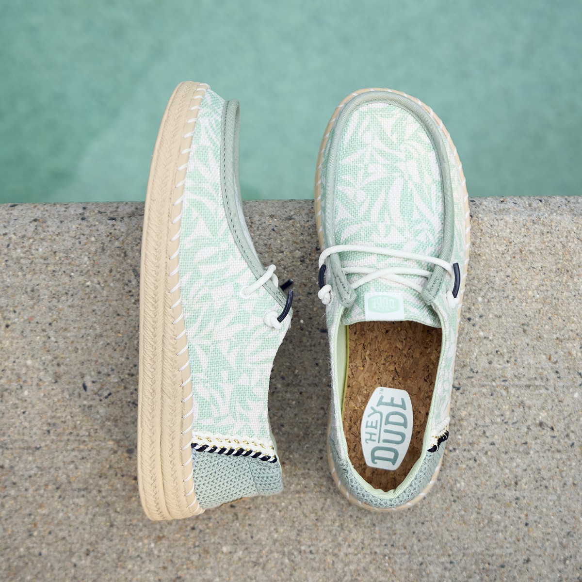 La spiaggia chiama, e noi rispondiamo: Wendy Espadrille Retro Palm. Questo nuovo capo baciato dal sole è la raffigurazione di un paradiso di palme su una tomaia in tessuto intrecciato grossolano e una suola sagomata ispirata alle espadrillas che ti consente di indossarli dal lungomare al bar sulla spiaggia