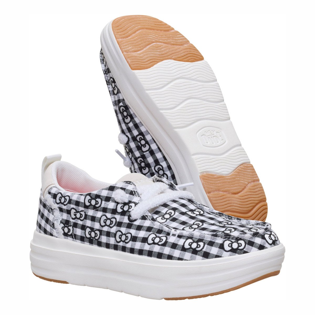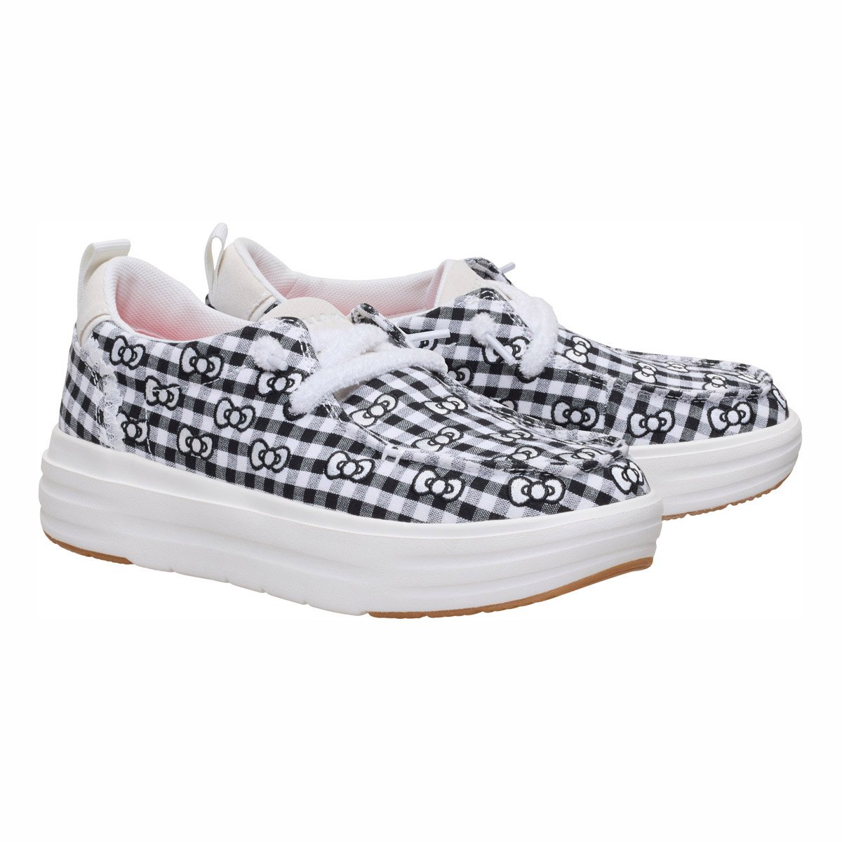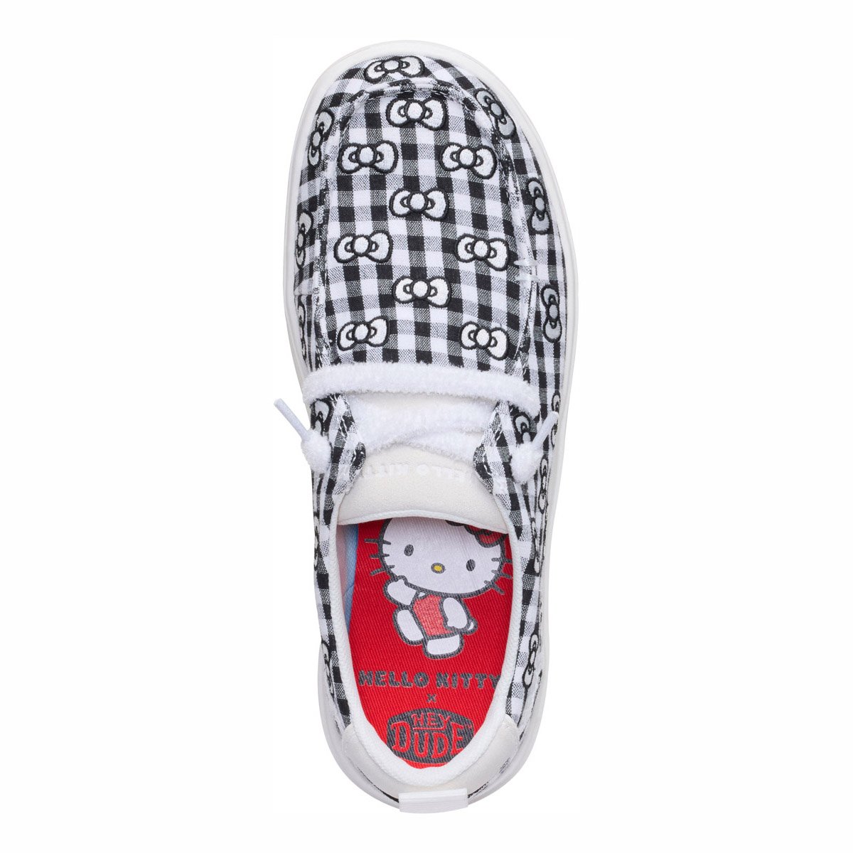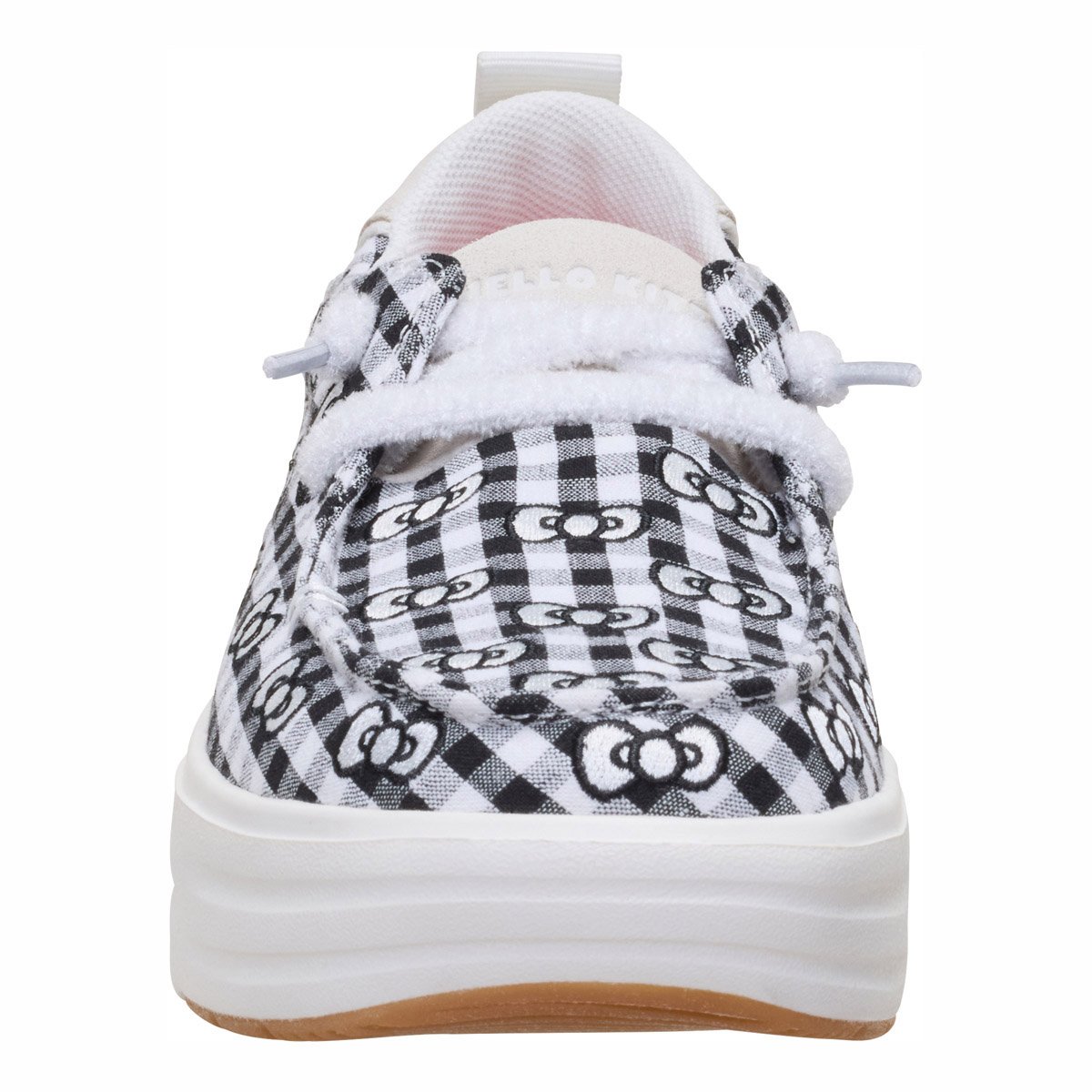 - Tomaia in gingham con fiocco Hello Kitty ricamato